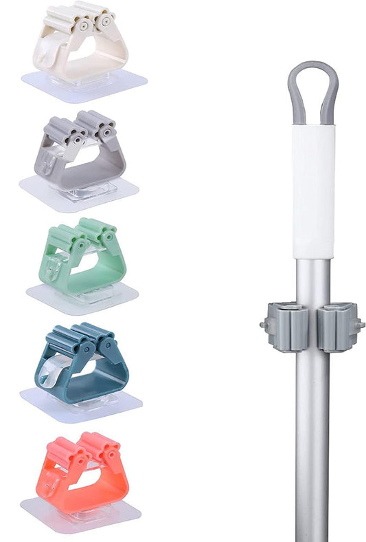 5 Pieces Adhesive Wall Mounted Mop and Broom Holder, Wall Mount Kitchen and Bathroom Organizer Self Adhesive Easy Install Multicolored Heavy Duty Holder