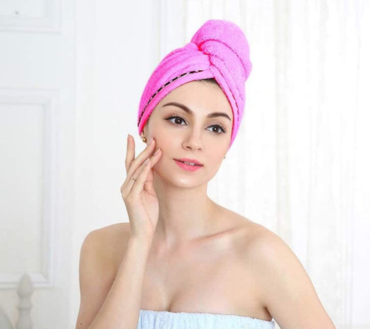 2 Pack Hair Drying Towels, Microfiber Hair Dry Cap Absorbent Fast Drying Hair Turbans With Elastic Loop and button, Hair Towel Wrap Quick Dry for Women Wet Hair (Pink, Rose Red)