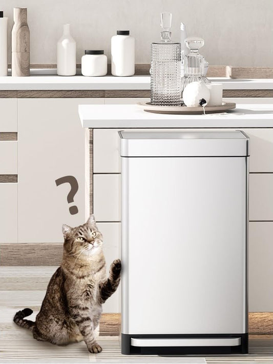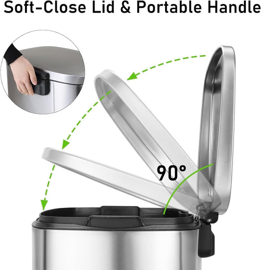 50L Stainless Steel Trash Can : Heavy Duty Metal Garbage Bin with Foot Pedal and Removable Inner Bucket Fingerprint Proof Pedal Rubbish Bin for Home Office (with 50pcs 80*100 cm Trash Bags)