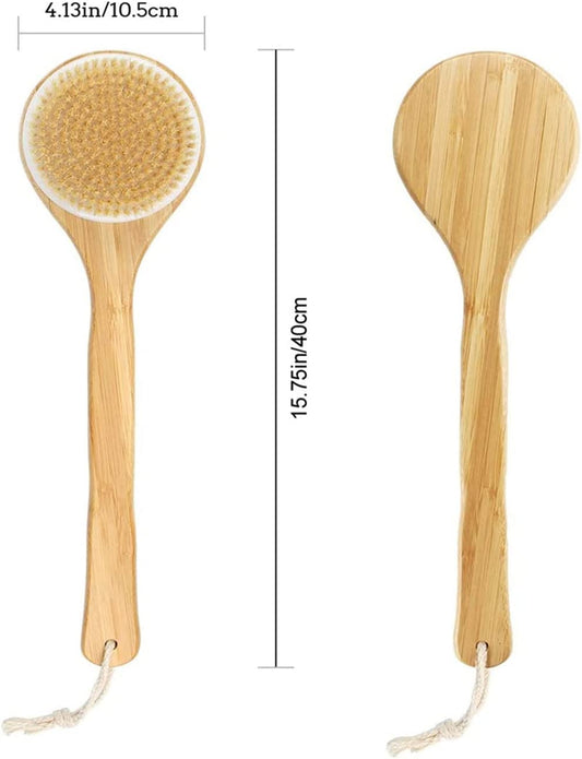 Bath Brush Long Handle, Shower Brush Soft Body Brush Back SPA Clean Natural Bristles Exfoliating Brush Long Wooden Handle Brown