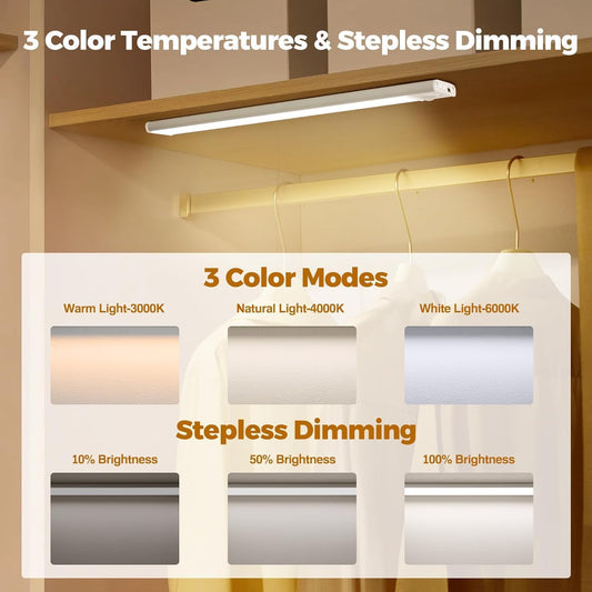 40cm Under Cabinet Lights : Wireless Rechargeable Battery Operated Motion Sensor Light with 3 Color Temps Magnetic Dimmable Closet Lights for Kitchen Bedroom Wardrobe Stairs Cabinet (Silver)