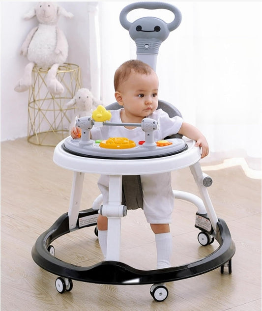 SKY-TOUCH Foldable Baby Walkers with Wheels and Baby Activity Center Toys Tray, Baby Walker with Foot Pads Handles Adjustable Height, Baby Walker for Boys and Girls from 6-18 Months
