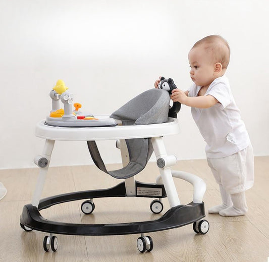 Foldable Baby Walkers with Wheels and Baby Activity Center Toys Tray, Baby Walker with Foot Pads Handles Adjustable Height, Baby Walker for Boys and Girls from 6-24 Months