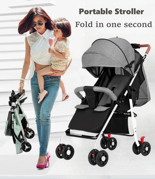 SKY-TOUCH Lightweight Travel Stroller, Foldable Baby Stroller With Large Storage Basket, Multi-Position Recline, Convenient One-hand Fold, Comfortable & Lay Flat (Grey)