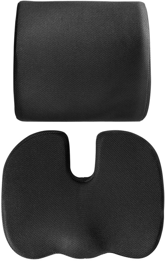 SKY-TOUCH Seat Cushion + Lumbar Support Ergonomic Pillow 100% Memory Foam Back Support and Pain Relief for Office Chair Cushion, Lumbar Support Pillow for Car Seat Cushion, Back Pillow Black