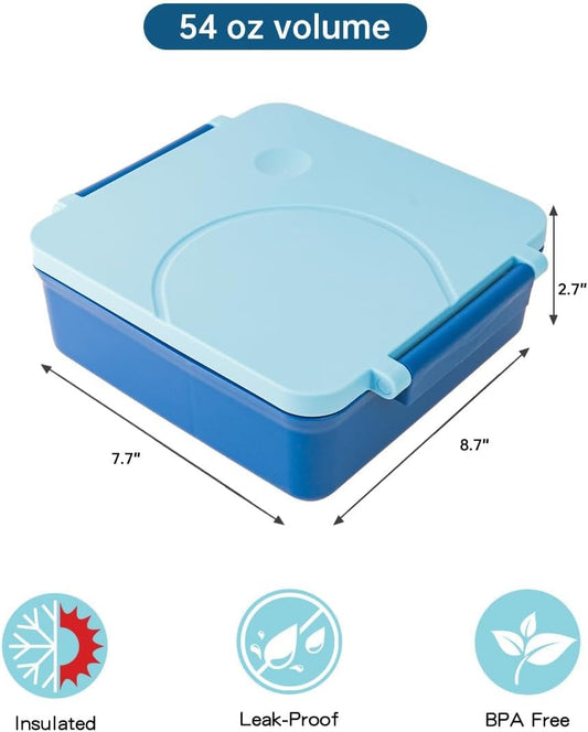 SKY-TOUCH 2L Kids Bento Lunch Box for School,Lunch Box with 4 Compartments,Insulated Leak-Proof Lunch Box Set,BPA-Free Containers, Microwave-Safe,for Kids Adult Boys & Girls School – Blue, 19.5x22cm