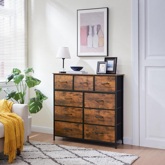 SKY-TOUCH Storage Cabinet : Bedroom Dresser with 9 Drawers Wide Storage Chest with Removable Fabric Bins Storage Organizer Unit for Living Room Entryway Hallway Nursery Kids Room (100*30*96CM Brown)