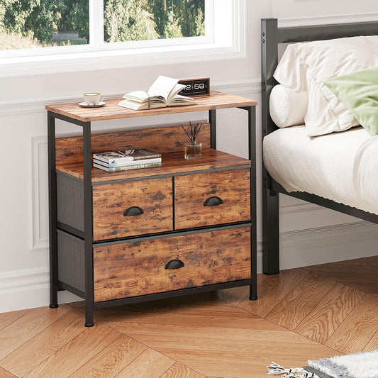 SKY-TOUCH 3 Fabric Drawer Nightstand Storage Chest Unit Home Cabinet w/Shelves Home Living Room Bedroom Entryway Living Furniture, Tiger Wood,22.8 * 11.4 * 24.8 inch
