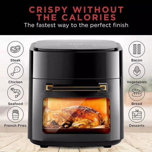 SKY-TOUCH 15L Smart Air Fryer : Multifunctional Oven with Large Viewing Window 360° Heat Digital Air Fryers with Dishwasher-Safe Oven Rack Fry Basket Baking Pan 60-200℃ 6 Presets (1400W Black)