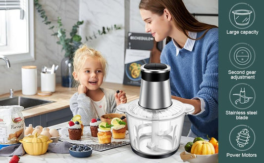 SKY-TOUCH 3L Electric Grinder Chopper|300W Meat Processor|Multi Food Chopper|2 Speed Levels|4 Sharp Blades|for Meat Vegetables Fruits and Nuts|26*26*28cm|Use NOTED:2min Overheat Protection|Detachable