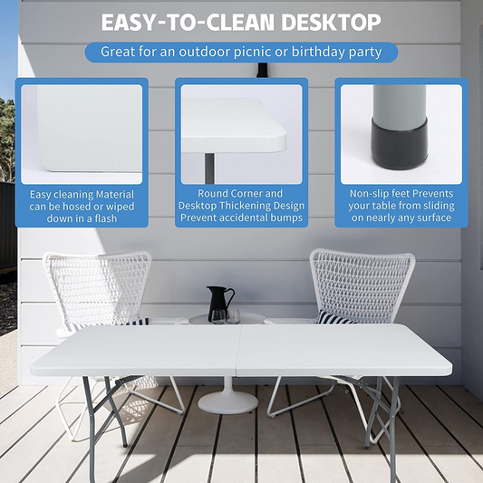 SKY-TOUCH Folding Lightweight Trestle Outdoor Camping Table,Heavy Duty Plastic Outdoor Folding Picnic Table,Folding Trestle Table For BBQ Party, Folds in Half with Carry Handle,White