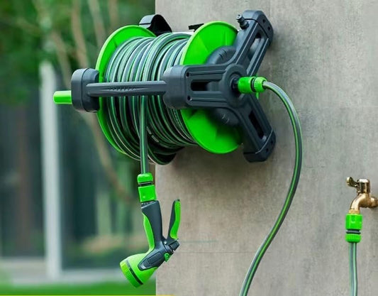 SKY-TOUCH Multifunction Hose Reel,Rust-resistant frame, Includes wall bracket,22.5m hose diameter,2.5m water inlet pipe,Universal faucet connector,Green
