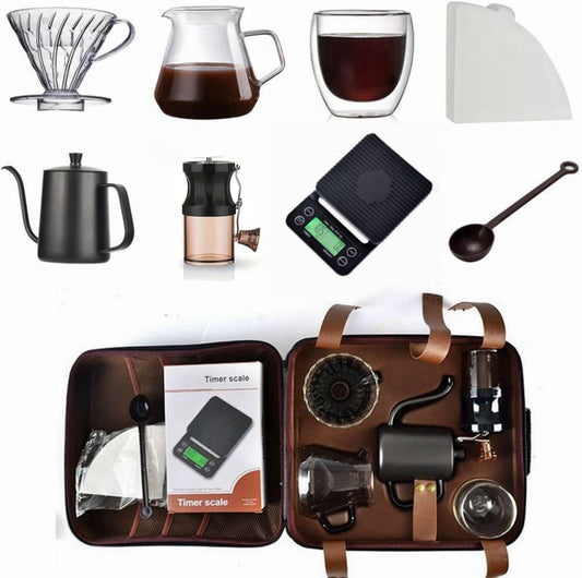 SKY-TOUCH V60 Drip Coffee Maker Set, 9 Pieces Pour Over Coffee Maker Set with coffee grinder, coffee scale, coffee kettle, coffee filter, Coffee Tool Set for Home,Travel,Camping Excellent Coffee Gift