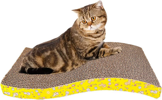 SKY-TOUCH Pet Cat Scratch Board Cardboard Cat Scratcher, Cat Scratching Pad Cat Grinding Claw Interactive Ball Scratch Toy Size 43 21.5 3cm, Yellow, 00061, Cat Scratchers