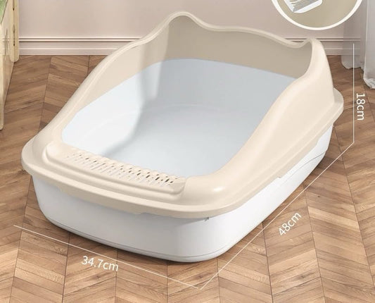 SKY-TOUCH Cat Litter Tray Box,Litter Box with High Side,Anti-Splashing Cats Litters Pan,Kitten Toilet with Litter Sifting Scoop,with Free Scoop Kitten Detachable Rim Easy Cleaning,48*35*18cm,White