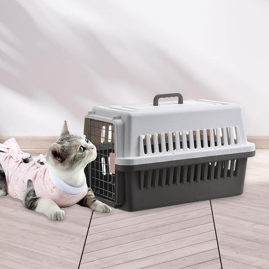 SKY-TOUCH Portable Hard Sided Pet Carrier Carry Breathable Crate Puppy Cage Tote Transport Box Travel Kennel for Cats, Kitten,Dog,Trips Outdoor, Safety closure system, Aeration grids,Black&Grey