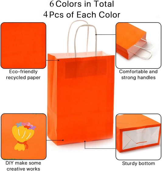 SKY-TOUCH Paper Gift Bags 24 Pcs, Kraft Paper Bags Party Favor Bags with Handles for Kids Birthday, Baby Shower, Crafts, Wedding, Party Supplies, Size 21x15x8 cm(6 Colors)