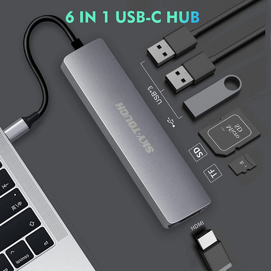 USB C Hub Multiport Adapter - 6 in 1 Portable Space Aluminum Dongle with 4K HDMI Output, 3 USB 3.0 Ports, SD/Micro SD Card Reader Compatible for MacBook Pro, XPS More Type C