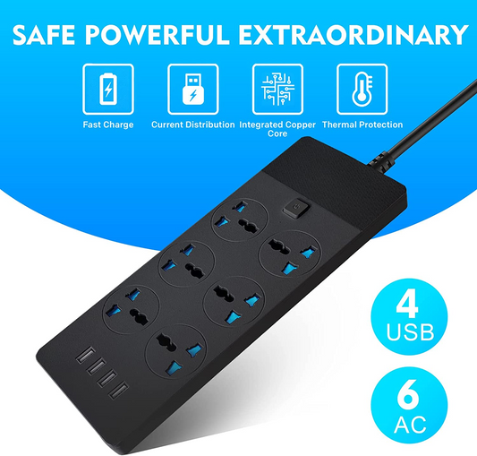 SKY-TOUCH Power Strips Extension Cord 3 Outlets, Power Socket with 6 USB Ports Universal Charging Socket with 2M Bold Extension Cord