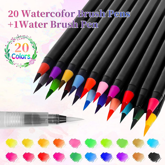 SKY-TOUCH 20 Pieces Brush Pens Set, Water Color Brush Pen Markers Ideal for Calligraphy, Hand Lettering and Drawing Manga Painting and Even Cartoon Sketching Brush
