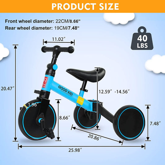 SKY-TOUCH 4 in 1 Kids Balance Bike Kids Tricycles for 1-4 Years, Toddlers Trike with Adjustable Seat Indoor Outdoor, Boys Girls Kids First Birthday Gifts Blue