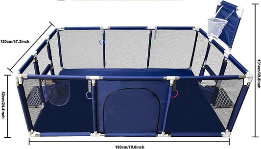 SKY-TOUCH Safety Large Portable Play Pen For Twin, Baby And Toddler Indoor Outdoor Baby Playpen With Extra Tall Size, Fun Activities, Basketball Hoop & Matblue, Safe Play Pen 1.2*1.8M